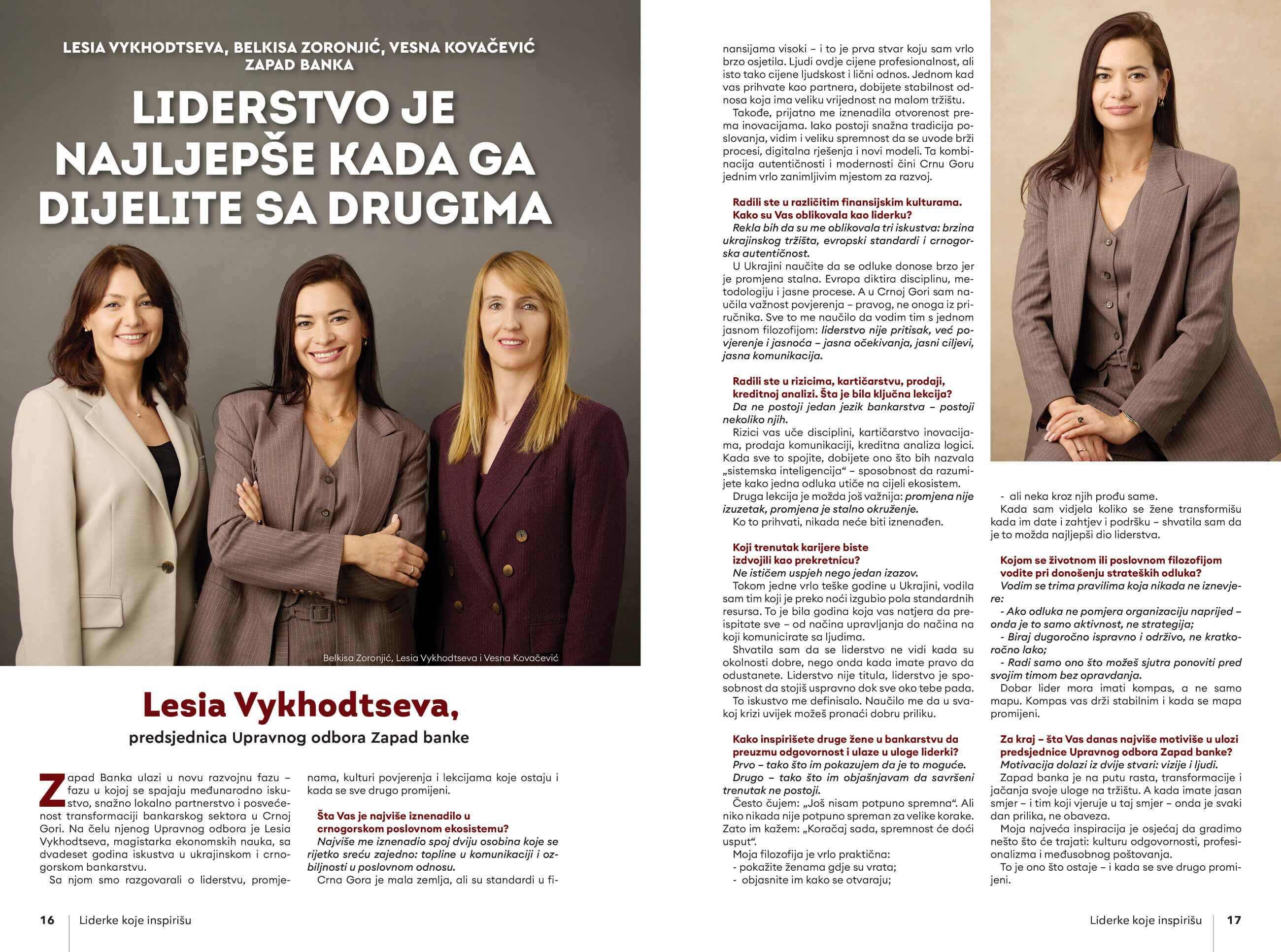 Prenosimo intervjue sa predsjednicom i članicama Upravnog odbora: Lesiom Vykhodtsevom, Belkisom Zoronjić i Vesnom Kovačević, objavljene u magazinu Liderke koje inspirišu.